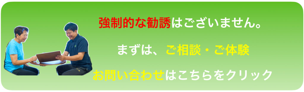 体験後のご入会については、お客様ご自身の判断を大切にしています。強引な勧誘は行いません。他の施設と比較していただいても構いません。「ここなら続けられそう」そう感じていただいたタイミングでご検討ください。